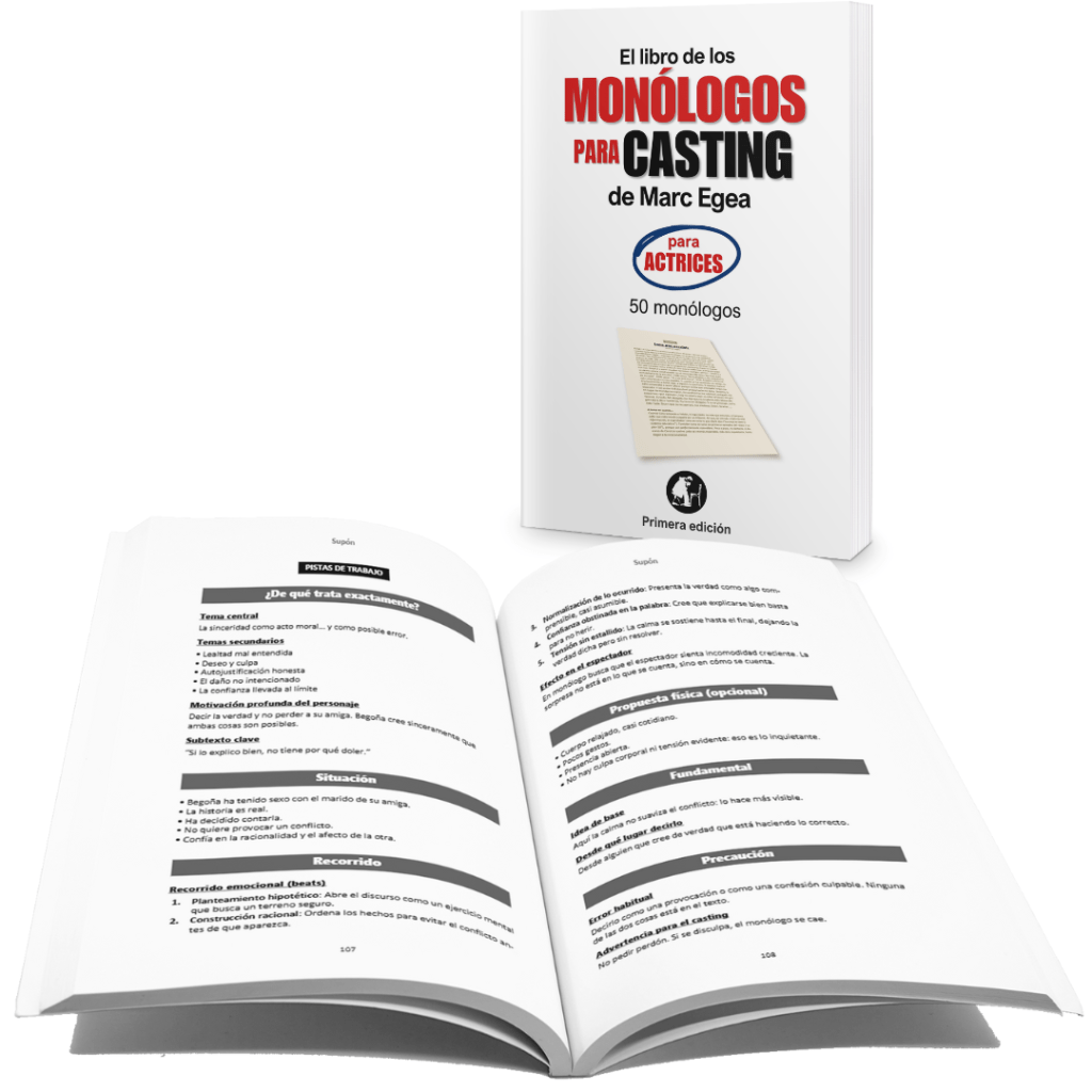 Este monólogo está extraído de El libro de los monólogos para casting (para actrices), donde está acompañado de una ficha de trabajo para ayudar a sacarle todo su potencial.