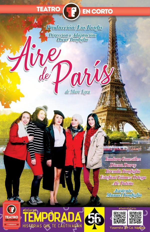 El segundo montaje es una producción de «Aire de París«, también dirigida y adaptada por Oscar Bonfiglio, que cuenta con un elenco doble, formado por: Isadora González, Diana Darcy, Breda Bonfiglio, Estefaní Gómez Ortega y Ale Patiño. Ambos montajes son una iniciativa de la productora Los Bonfis, que podrán verse durante un mes en Teatro En Corto (Yosemite 40, Nápoles, 03810 Ciudad de México).