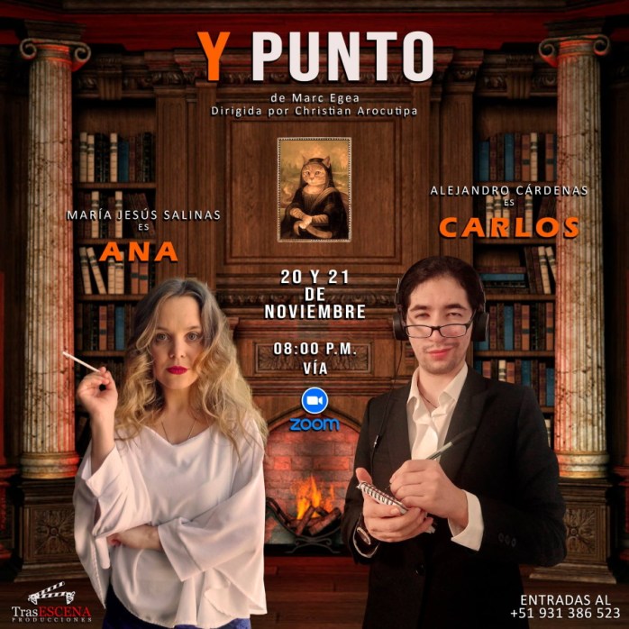 El próximo viernes 20 de noviembre se estrena un nuevo montaje de «Y punto», a cargo de Tras Escena Producciones. La obra está adaptada y dirigida Christian Arocutipa Zeta; la protagonizan: María Jesús Salinas de Talavera (Argentina) y Jano Jandro Cárdenas Díaz (Perú).