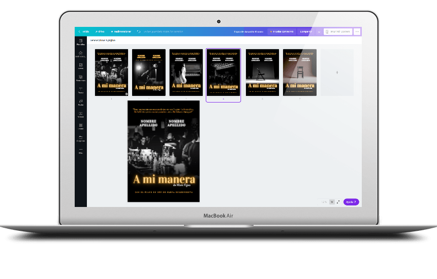 El Pack Producción «A mi manera» proporciona diseños promocionales -en formato CANVA- personalizables (poster, post Instagram, historia Instagram, banner, slide, etc.).